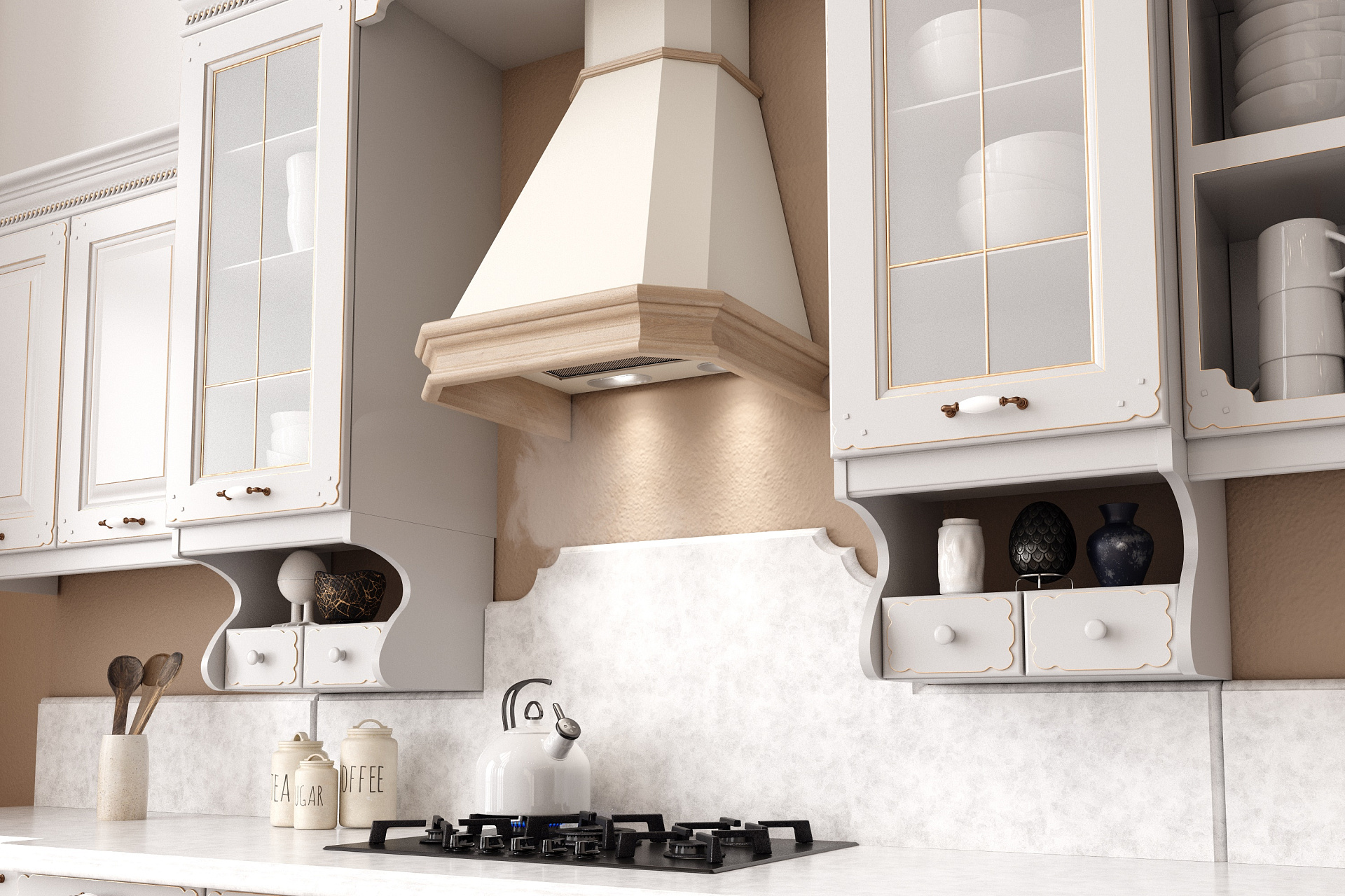 Для классических вытяжек используются материалы дуба или бука - древесина, которая устойчива к воздействию влаги, эластична и отличается высокими декоративными свойствами.