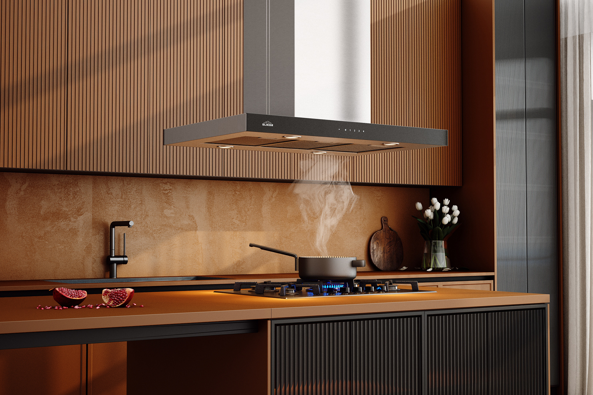 Светодиоды обеспечивают эффективную подсветку плиты и прилегающей рабочей поверхности. Светодиодные лампы во всех вытяжках ELIKOR обладают теплотой освещения 4000 кельвинов — это наиболее естественный свет, приятный глазу и не искажающий цвет еды. Светодиодные лампы рассчитаны на длительный срок службы (более 10 лет). Светодиодное освещение отличается высоким КПД при минимальном потреблении электроэнергии.