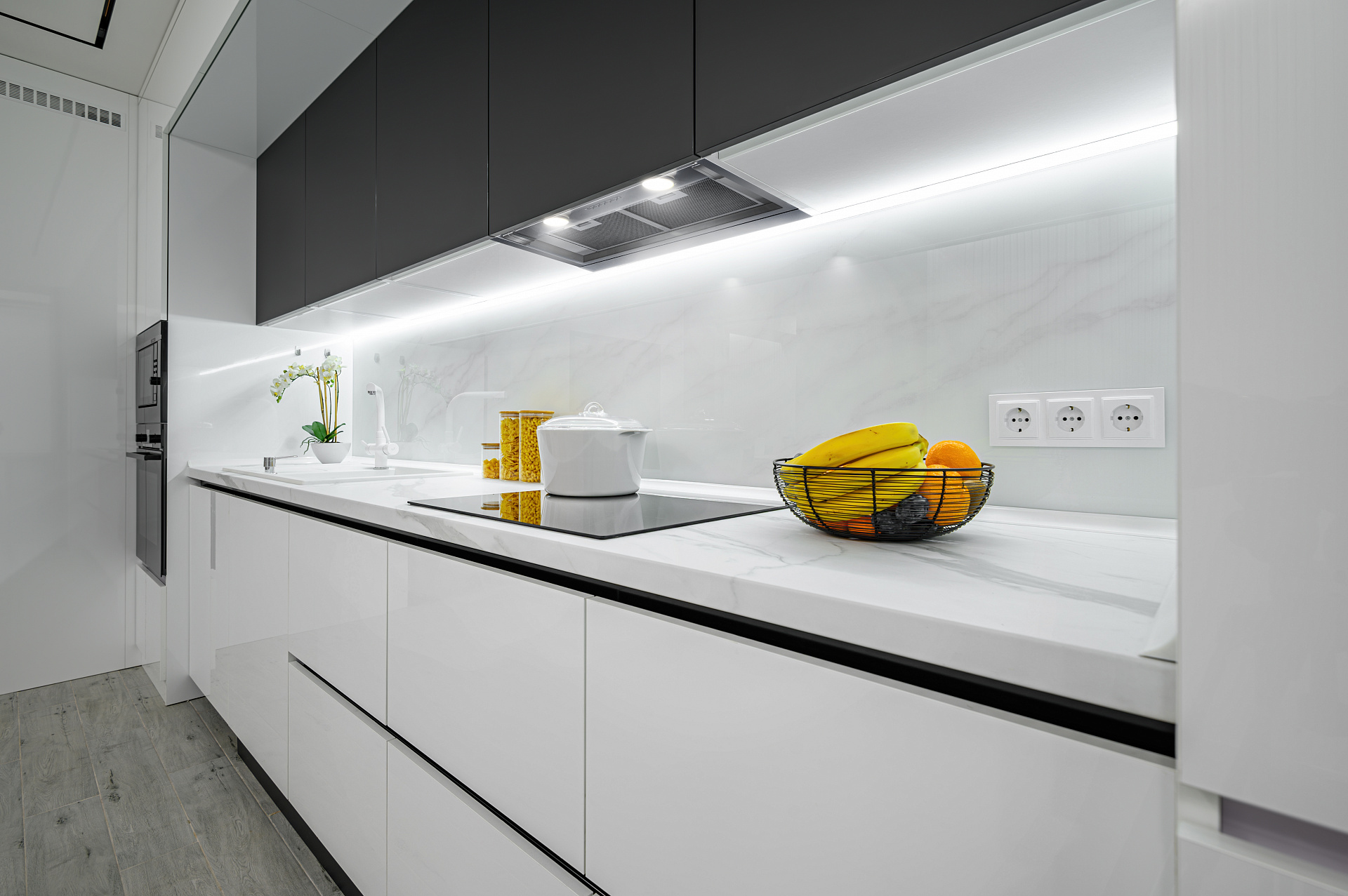 Светодиоды обеспечивают эффективную подсветку плиты и прилегающей рабочей поверхности. Светодиодные лампы во всех вытяжках ELIKOR обладают теплотой освещения 4000 кельвинов — это наиболее естественный свет, приятный глазу и не искажающий цвет еды. Светодиодные лампы рассчитаны на длительный срок службы (более 10 лет). Светодиодное освещение отличается высоким КПД при минимальном потреблении электроэнергии.